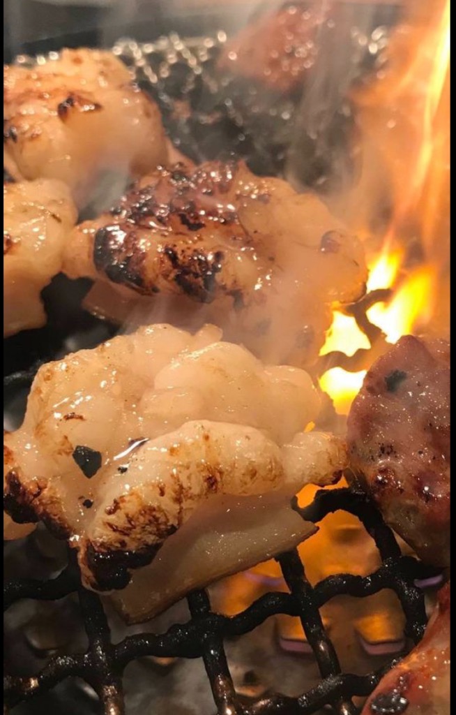 炭火の上でじゅうじゅう音を立てるたび、